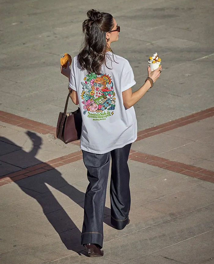 La colaboración se convierte en la forma idónea de plasmar el propósito de la marca: invitar a las personas a tomarse la vida de manera más ligera. Para Llaollao, no hay decisiones correctas o incorrectas, solo combinaciones diferentes. La ilustración creada ha ido más allá del formato digital y se convierte en una camiseta exclusiva para los consumidores de los productos de Llaollao.