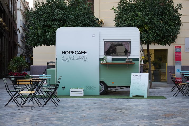 Acción callejera de la agencia Mapa en la plaza de Julián Romea para estimular la incorporación de nuevos voluntarios al Teléfono de la Esperanza de Murcia