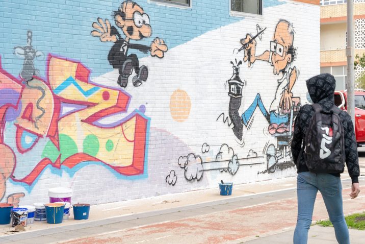 Coincidiendo con la exposición de calle ¿Pintas o dibujas? Un paseo por el arte de la mano del cómic en Cartagena, se ha organizado un programa de actividades paralelas entre las que figura la realización de un grafiti homenaje al dibujante Ibáñez en una pared del centro cultural Ramón Alonso Luzzy. El mural es obra del artista multidisciplinar Raúl Estal, que contribuye con esta obra al apoyo de la candidatura de Francisco Ibáñez al premio Princesa de Asturias, a la vez que se rinde homenaje...