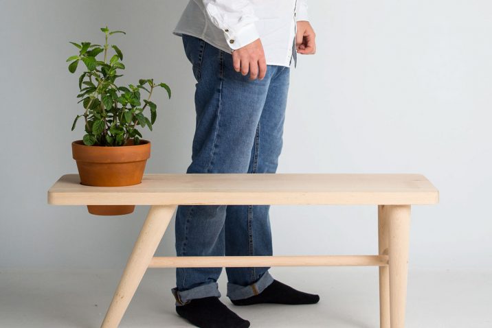 El diseñador de producto murciano Joaquín Castro Falcón propone Equilibrio, un atractivo banco fabricado en madera de haya que reserva parte de su espacio para albergar una planta. Usuario y naturaleza, en diálogo.