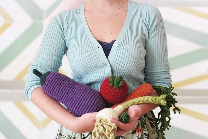 La creativa murciana María Valcárcel ha creado todo un universo verde empleando hilo y lana. Sus frutas y verduras invitan a hincarles el diente. De vez en cuando enseña cómo hacerlas, por ejemplo, en sitios como El recreo, en Murcia. Excelente ocasión para abastecer la despensa de cosas bonitas.