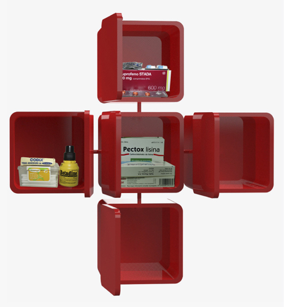 Una estructura con cinco cubos, que se corresponden con diferentes partes del cuerpo, para mantener ordenados los medicamentos de uso doméstico. Esa es la propuesta de Cristina Caro, joven diseñadora de producto murciana.