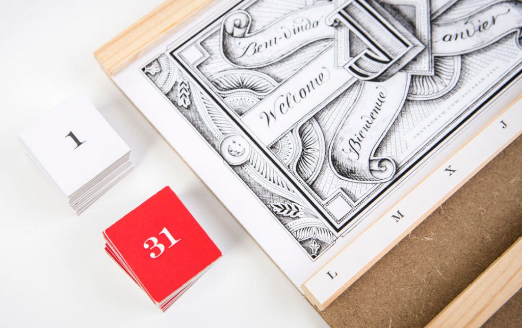 El calígrafo y diseñador gráfico radicado en Los Alcázares Javier Alcázar ha creado un calendario perpetuo con base de madera, en el que meses y días son intercambiables con el formato de fichas. Los doce meses son otras tantas reproducciones de ilustraciones realizadas por Alcázar.