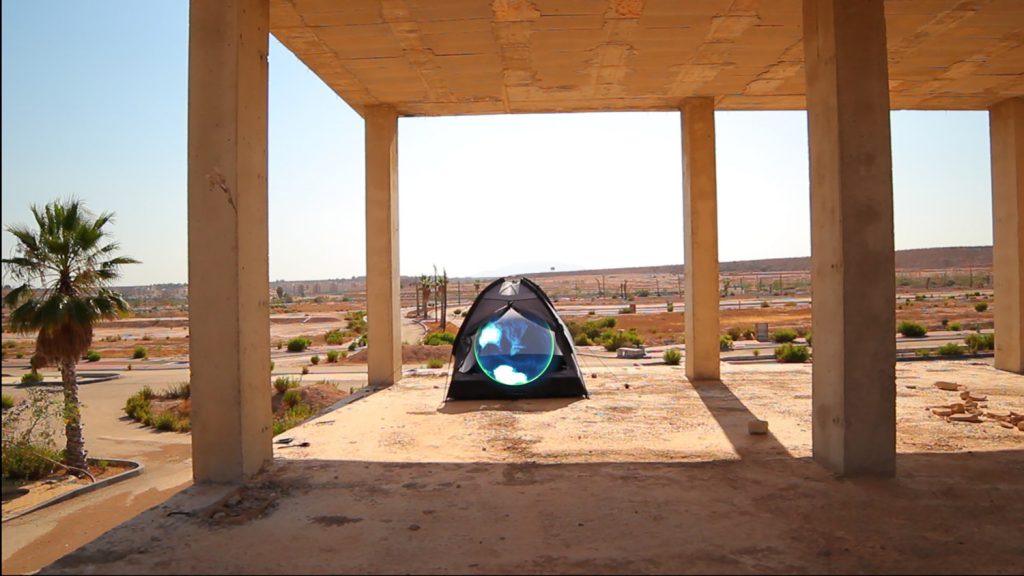 La videoinstalación contiene imágenes del aeropuerto de Corvera, cuyas instalaciones son observadas por los animales que pueblan los alrededores. También se documentan las numerosas urbanizaciones abandonadas que florecieron hace menos de una década en los campos murcianos. Las imágenes forman parte de un remedo de videojuego aparentemente ambientado en otro planeta.