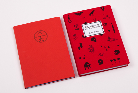 La propuesta editorial está planteada en un doble sentido. Por un lado, la edición ilustrada de Los silogismos de la amargura, mediante el uso de “multitud de formatos, queriendo reflejar al estilo fragmentario de la prosa del autor”, señala el diseñador. De otro lado, lo que Arroyo denomina La liga del desaliento, un segundo volumen que recoge personajes afines al escritor y los relaciona entre sí. Una “suerte de sociedad secreta, representada por el emblema de la portada. Ambos libros conforman una unidad editorial, pueden ser leídos y disfrutados por separado pero es juntos cuando adquieren su sentido completo”, afirma.