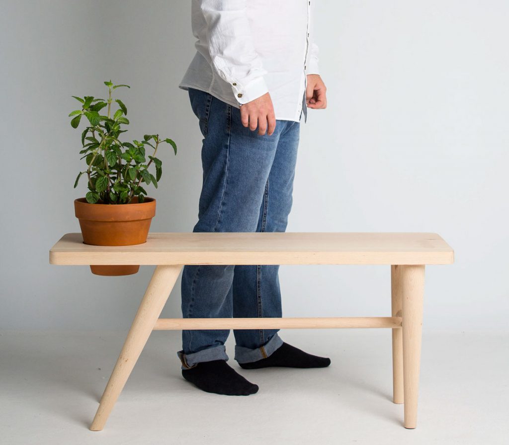 El diseñador de producto murciano Joaquín Castro Falcón propone Equilibrio, un atractivo banco fabricado en madera de haya que reserva parte de su espacio para albergar una planta. Usuario y naturaleza, en diálogo.