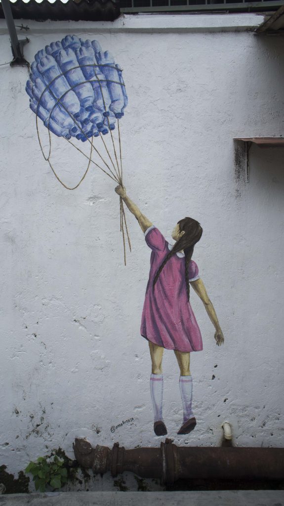 Por la capital, Georgetown, típico legado por la colonización británica que se inventó el país compartido por malayos, indios y chinos, parecía que había pasado algún discípulo de Banksy. O quizá no. El caso es que una buena serie de pinturas que recordaban al grafitero inglés que dicen que es de Bristol, aunque sin su vis social y crítica. Sin embargo, la particularidad de muchas de esas pinturas callejeras es que dejaban lugar para que el público se incorporara a la obra, participando directamente de ella e invitando al retrato curioso de amigos o al selfi.