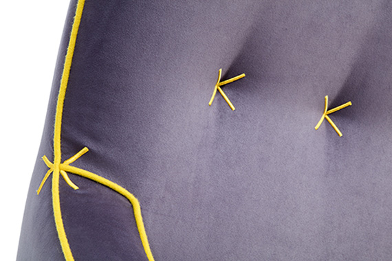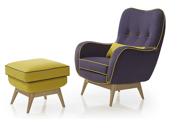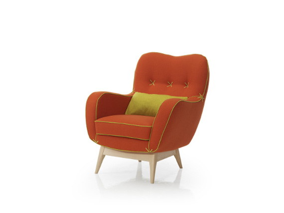Influido por el paisaje de los prados, el sillón Vega recuerda también las sillas medievales españolas. Sus elementos más característicos son las líneas curvas y las costuras, muy visibles y en colores que contrastan fuertemente con las tapicerías.