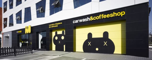 La agencia Germinal creó hace unos años la identidad gráfica de un lavadero de coches situado en el municipio de San Javier y poseedor de una singular marca: Sr. Miyagi. Los creativos de Germinal desarrollaron un amplio catálogo gráfico sobre la fachada del local. Mayor protagonismo aún adquiere la tipografía en el área que delimita la biblioteca de Cieza obra del arquitecto Martín Lejárraga o en la fachada de la nueva sede de la empresa de venta de herramientas Vigaceros en el polígono industrial Oeste, proyectada por Manuel Clavel. Asimismo el estudio de los Clavel realizó un espectacular ejercicio de arquitectura efímera para un stand de degustación de Cafés Salzillo en la plaza de Belluga de Murcia en el que la tipografía corpórea se adueñaba literalmente de la calle. El estudio de arquitectura Momo jugó con las letras para las barandillas y cercados de una armería en las proximidades de Murcia, mientras que la identidad corporativa -creada por el acreditado Alberto Corazón- preside a gran escala la entrada a la sede de los arquitectos técnicos en la capital de la Región. Por último, igualmente es destacable el uso de letras de grandes dimensiones por parte del arquitecto Vázquez Consuegra en las zonas de acceso al Arqua de Cartagena.