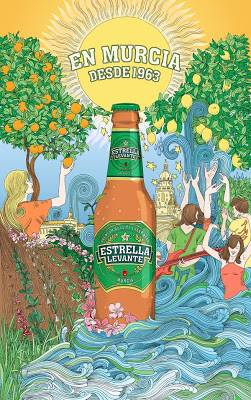 Estrella de Levante, la cervecera murciana del Grupo Damm, cuida con mimo desde hace decenios su imagen gráfica. Sus piezas para carteles, vallas, vehículos de reparto y prensa suelen ser encomendadas a excelentes ilustradores, como Mimí Margalef, autora de los dos carteles que se reproducen más adelante. Para redondear la jugada, la empresa ha sacado a concurso en dos ocasiones consecutivas el diseño de su botella de noche, destinada al consumo en discotecas y locales nocturnos. En la última edición, el diseño ganador fue realizado por Insignia Creativa, obteniendo además un Laus de plata en 2009. En pocas semanas se conocerá el vencedor de la tercera edición.