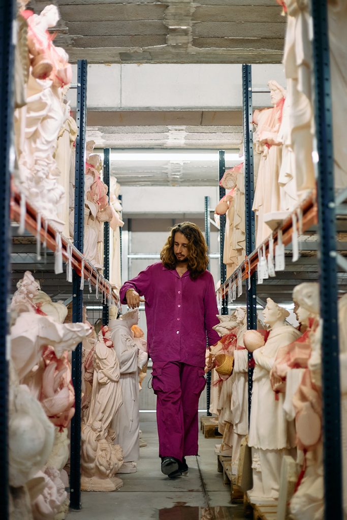 Las esculturas, salidas del molde en crudo y procedentes del Arte Cristiano situado en Olot —un espacio fundado en 1880 y dedicado a la producción de objetos concebidos para la devoción, la artesanía y la permanencia—, son reapropiadas por Gaston Lisak en su serie Sacred Plastics. A través de su característico tratamiento cromático, el artista las interviene para hacerlas reaparecer en un contexto radicalmente distinto, desplazando su función original y reactivando su presencia desde otros marcos de lectura. Junto a estas figuras, Lisak presenta la obra Una reflexión sobre lo que ya no está, una instalación compuesta por XXX pedestales, en su mayoría soportes de madera realizados ad hoc, que remiten a esculturas ausentes: cuerpos que faltan, imágenes vendidas, destruidas u olvidadas.