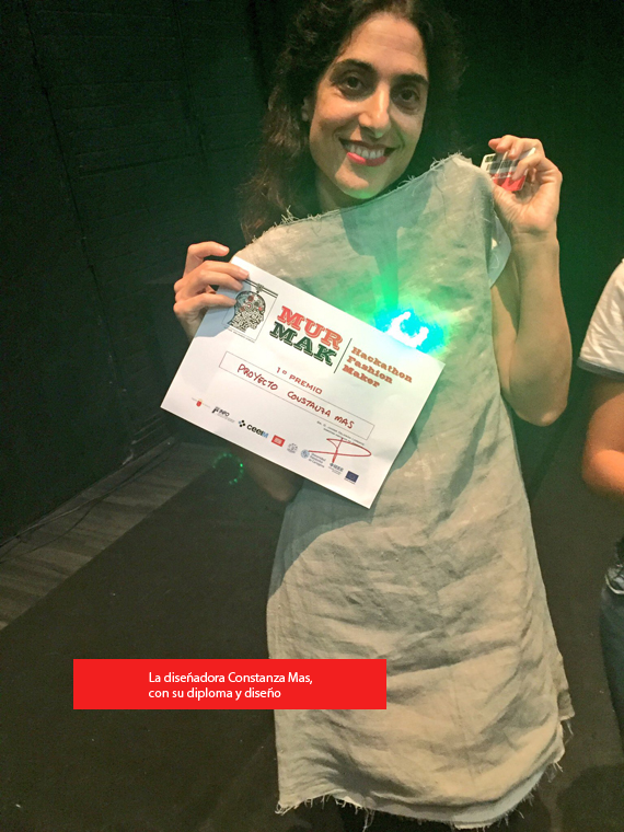 El diseño ganador fue el de Constanza Mas, que presentó un vestido de su colección Moda simple para gente compleja al que incorporó unas lámparas led en forma de C -en un guiño a su nombre- que se iluminaba según la agitación de la modelo. Blanco, para indicar el estado de reposo; verde, al detectar el desplazamiento, y rojo para evidenciar el movimiento acelerado y convulso asimilable al estrés, en un día cualquiera en la vida de un urbanita.