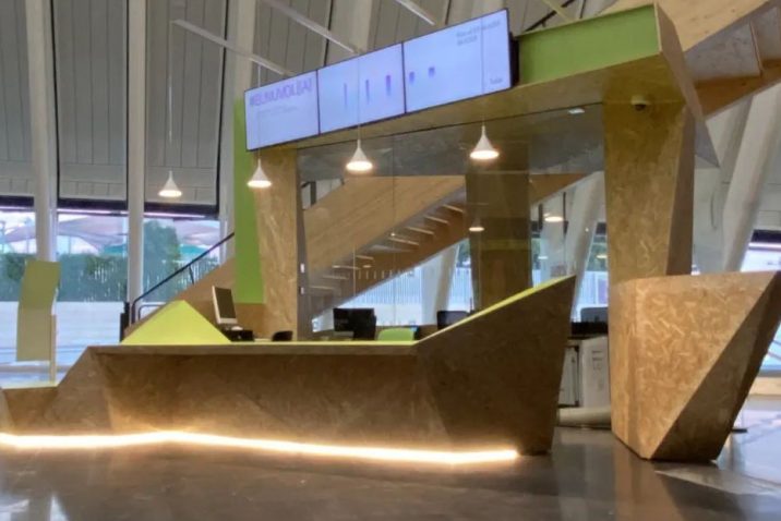 Javier Peña, arquitecto asociado en el proyecto, idea los módulos de recepción construidos en San Pedro del Pinatar. La cubierta del auditorio es de Cartonlab